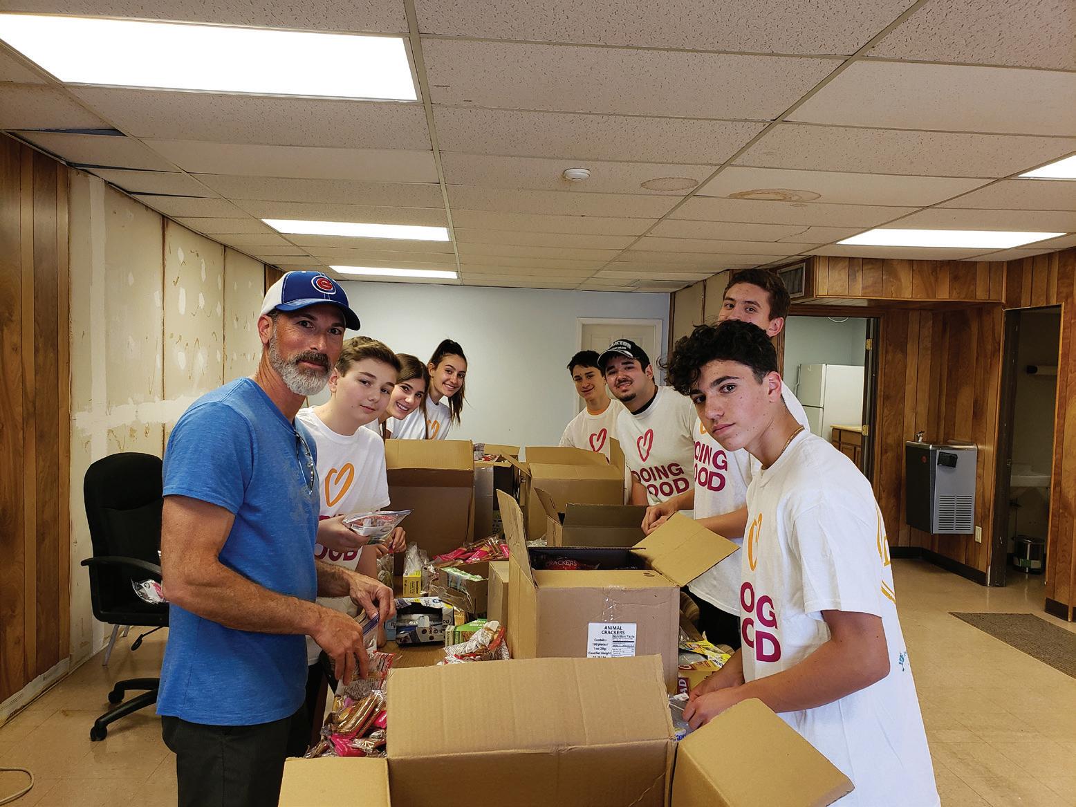 Volunteer teens and adults prepare snack bags for ICM Clothing & Food Bank with the Jewish Community Foundation’s B’nai Tzedek Youth Philanthropy Program on Sunday, April 7.