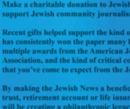 Contributions to the Jewish News, a 501(c)(3) organization, are tax deductible. Seek independent professional legal advice before making any change to your plans.