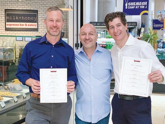 Doctors Craig Primack, left, and Robert Ziltzer, right, of Scottsdale Weight Loss Center show off the new SWLC menu, developed with milk + honey espresso bar & eatery owner Dany Marciano, center, as part of the Fit Mind, Fit Body partnership with the Valley of the Sun JCC. In addition to the healthy menu options, SWLC behavior therapists and registered dietitians lead monthly classes on a variety of topics such as mindful eating, the benefits of eating lean and how to make good choices when eating out.