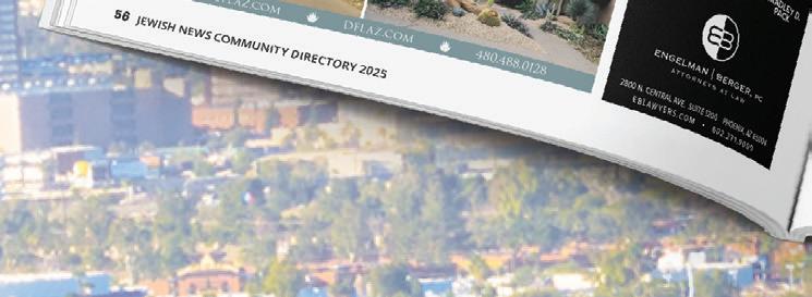 12701 N. Scottsdale Road, Suite 201, Scottsdale, AZ 85254 Phone: 602.870.9470 | Fax: 602.870.0426 | editor@jewishaz.com | advertising@jewishaz.com subscriptions@jewishaz.com | www.jewishaz.com