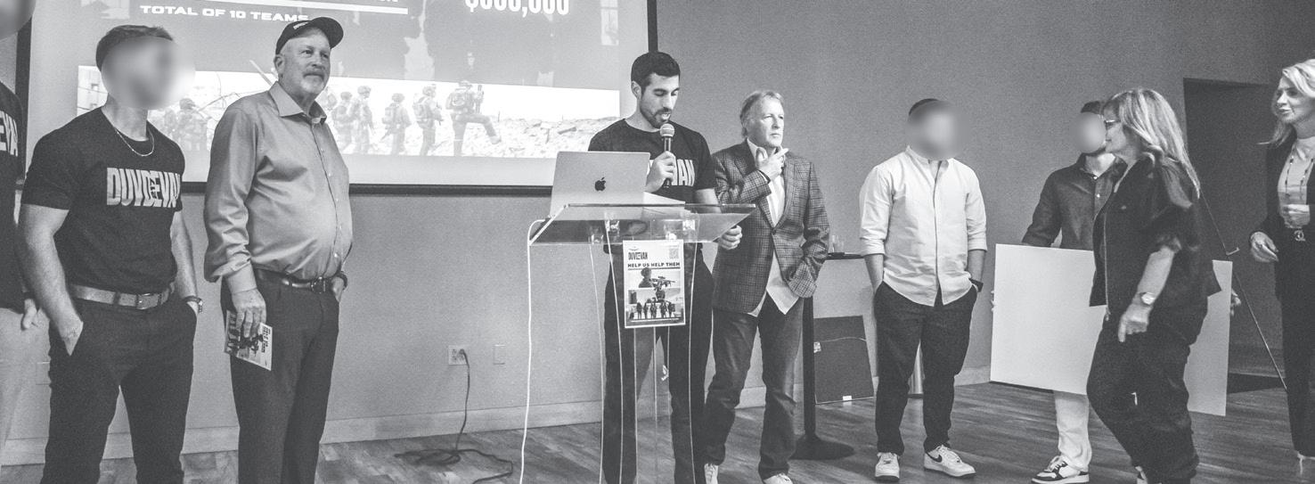 One moment, they may be sitting at a Shabbat table with their family, and then two hours later, they are in a refugee camp in Judea and Samaria on an operation to prevent a terrorist attack. These jarring transitions between the battlefield and ordinary life are a real challenge for this unit, which is the highest producer of post-traumatic stress disorder (PTSD) cases in the IDF, according to Guy Farache, the CEO of the Friends of Duvdevan foundation. Farache, a reserve company commander within the Duvdevan Unit, spoke at Congregation Beth Tefillah in Scottsdale on Nov. 5 with other members of the unit. Duvdevan is Hebrew for “cherry,” symbolizing the idea that Duvdevan is considered one of the top units in the IDF. (It’s also the inspiration for the hit Israeli drama “Fauda.”) Among the approximately 200 people who attended the event were the evening’s hosts — Hilton and Melanie Efune, Steve and Suzi Hilton and Marshall Polk — who aim to spread awareness about the unit, as well as raise funds to help support the foundation’s efforts to help soldiers heal from PTSD.