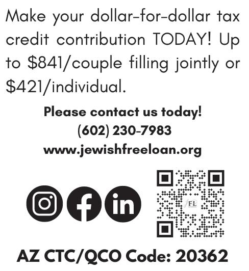 For additional information or to book your ad today contact: Jodi Lipson 602-639-5866 jlipson@jewishaz.com