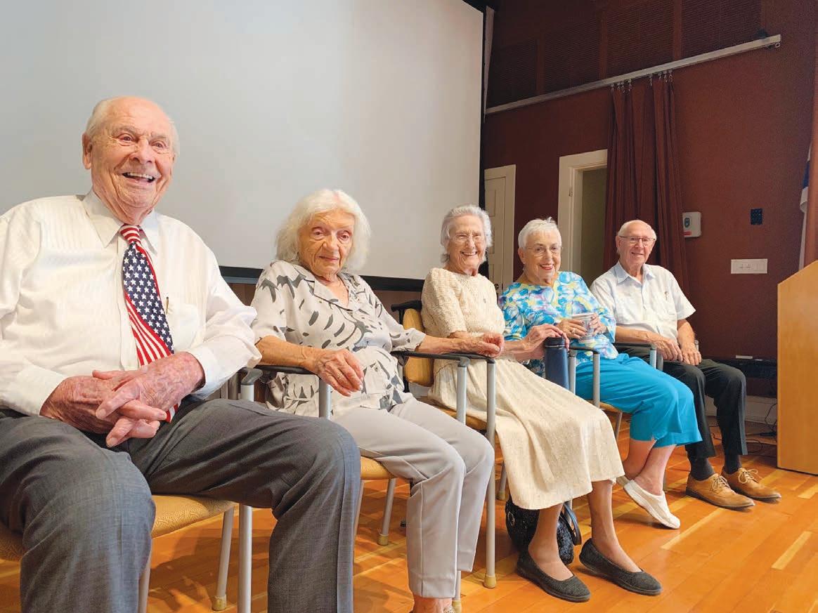 The Arizona Jewish Historical Society hosted a Holocaust education seminar on July 14 for over 120 students from Aguila Youth Leadership Institute. The keynote speakers were, from left to right, U.S. army veteran Vernon Schmidt, Italian resistance fighter Margherita Fray, Holocaust survivors Esther Basch, Marge Rich and Dirk van Leenen. The event was part of Aguila’s annual summer symposium, entitled “Finding the Light Within.”