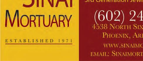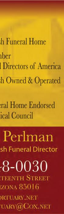 Jewish News (ISSN 1070-5848) is published less than weekly, by Phoenix Jewish News, LLC, dba Jewish News. A subscription is $48 per year, payable in advance to Jewish News, 12701 N. Scottsdale Road, Suite 206, Scottsdale, AZ 85254, Periodicals postage paid at Phoenix, Arizona. POSTMASTER: Send address changes to Jewish News, 12701 N. Scottsdale Road, Suite 206, Scottsdale, AZ 85254, 602-870-9470