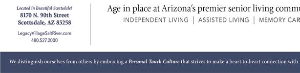Independent Living • Assisted Living Skilled Nursing • Memory Care 480-900-5553 • FriendshipVillageAZ.com 2645 East Southern Avenue • Tempe, Arizona 85282