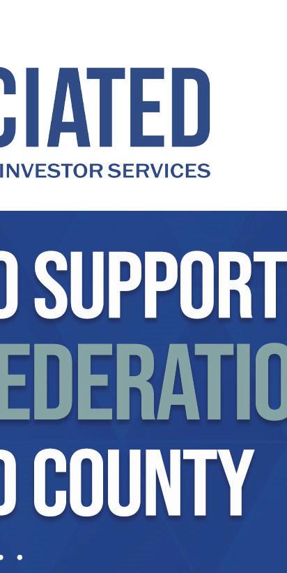 BRONZE 57 Proudly serving our Jewish communities of Palm Beach, Broward and Dade counties for over 40 years, and honored to be a partner of The Jewish Federation of Broward. In your time of need or to make pre-arrangements, we promise to treat your family as our own. 3201 n . 72 nd avenue , hollywood , fl 33024 www.bethdavidmemorial.com www.levitt-weinstein.com 954.543.5911 Insurance Representative of Massachusetts Mutual Life Insurance Company (MassMutual), Springfield, MA 01111-0001, and its affiliated US Insurance companies. Local firms are sales offices of MassMutual, and are not subsidiaries of MassMutual or its affiliated companies. Insurance products issued by Massachusetts Mutual Life Insurance Company (MassMutual), Springfield, MA 01111, and its affiliated US insurance companies. Securities and investment advisory services offered through MML Investors Services, LLC, Member SIPC® and a MassMutual subsidiary. Supervisory Office: 1000 Corporate Drive, Suite 700, Fort Lauderdale, FL