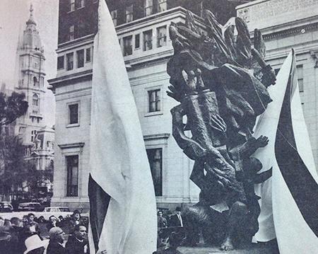 In 1964, the Federation of Jewish Agencies of Greater Philadelphia helped establish the first U.S. Holocaust memorial, initially planned for Gratz College. The Federation and the Association of Jewish New Americans advocated for a central location to reach a wider audience. In 1966, they formed the Memorial Committee for the Six Million Martyrs to improve the sculpture’s impact and to promote interfaith dialogue and Holocaust education in Greater Philadelphia’s public schools. The committee also organized annual memorial services and vigils for political causes, including the oppression of Jewish communities in the Soviet Union and Syria (1972).