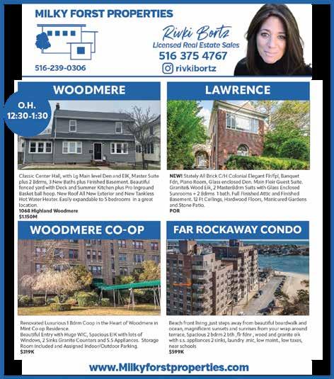 Spacious 2BR, 2 Full Bath Apt with an enclosed terrace in the heart of Lawrence. Well maintained & manicured building. New hardwood floors, updated Eat-in Kitchen with gas stove. warming draw, dishwasher & microwave. New windows on the enclosed terrace & one of the bedrooms. 3 New A/C Units & New Refrigerator. Close to shopping, transportation, library, schools, and houses of worship. $339K OPEN HOUSE SUNDAY FEBRUARY 19 2:003:30PM 284CENTRAL AVE B-5 Mark Lipner Associate Broker Berkshire Hathaway Laffey International 516298-8457 mlipner@bhhslaffey.com
