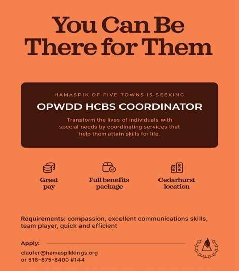 classifieds@fivetownsjewishhome.com • text 443-929-4003