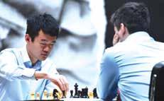 Ding’s match against Nepomniachtchi was decided in a series of four tiebreaker games made necessary after the regulation portion of the match, 14 grueling classical games, ended in a tie. Each player won three games in the regulation portion; the other eight ended in draws.
