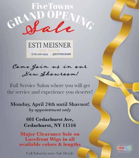 Classified Deadline: Monday 5:00PM classifieds@fivetownsjewishhome.com