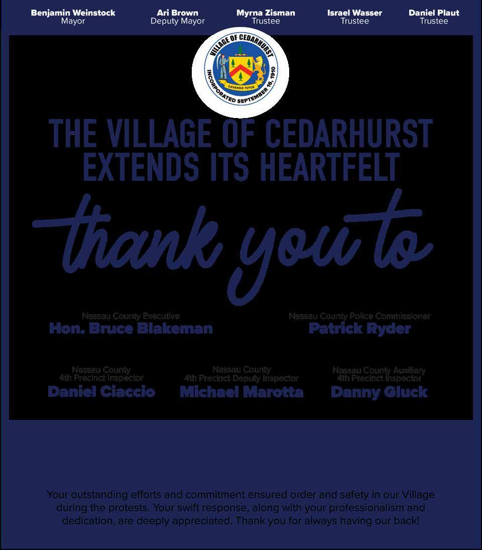 on Spruce Street. They had the nerve to come to our local shopping avenue and terrorize Jewish people by shouting hateful speech and holding up antisemitic signs. This is the second time YILC has hosted an Israel event which was disrupted by these pro-Hamas protesters who don’t belong in our Jewish neighborhood. Most of Spruce Street was closed off, which caused even more traffic than usual and was an inconvenience to drivers and pedestrians. I passed by the scene multiple times while shopping and saw young children who looked scared and confused. How does Nassau County permit this?! If this hate was done to any other group of people there would be more outrage and the County would put a stop to it immediately.