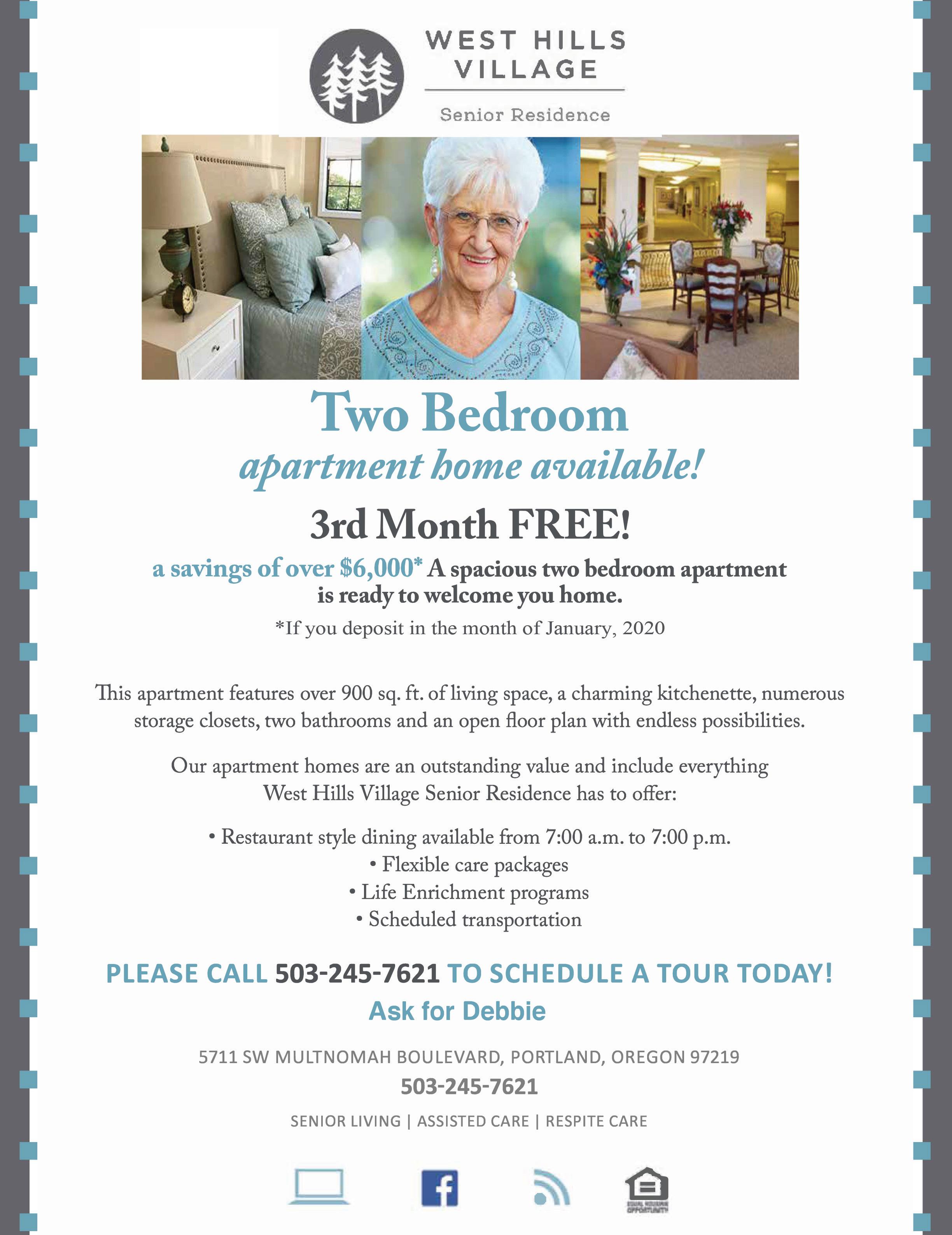 Originally called the “Jewish Old People’s Home,” then Robison Jewish Home and now Cedar Sinai Park, the organization founded in 1920 has been serving the changing needs of Jewish elders for a full century. Today, Cedar Sinai Park ofers a wide variety of services, including post-hospital rehabilitation, long-term nursing care in small group settings, adult day services and in-home care. While Cedar Sinai Park’s services are broad, a core part of the campus is Rose Schnitzer Manor (RSM), the assisted living community nestled among the trees on the 27-acre campus just of BeavertonHillsdale Highway.