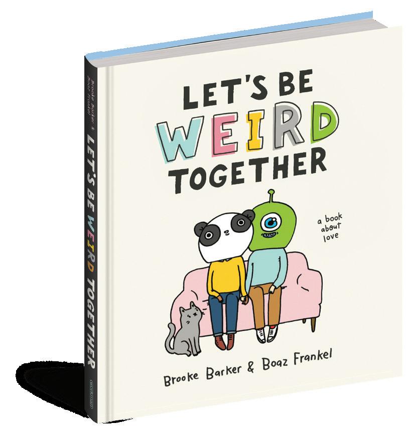 write a book together. “ Tey’re like, ‘I wonder if there’s a book you two could write together about something,” remembers Boaz. At f sure. “When we got home, we thought, ‘What if we did it, what would that look like?’ Ten we started generating ideas, and I was like, ‘Oh gosh, this could actually be pretty funny,’ ” says Boaz. Te idea behind the book started to grow on them, and they put together a pitch and presented it to their editors. Let’s Be Weird Together, “a book about weird couples and the tiny twoperson universes they create,” was born.