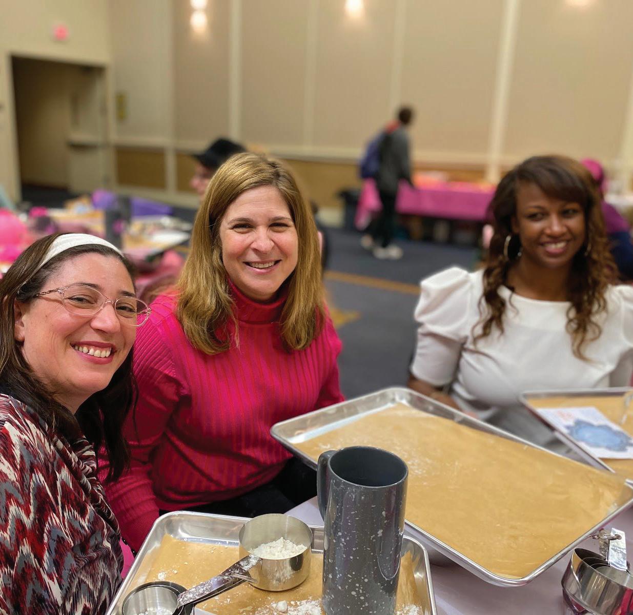 THINK PINK – From left, Tehila Derfer, Sandy Katz and Kalkidan Ezra participated in the Pink Challah Bake PDX 2019 at the Mittleman Jewish Community Center in November.