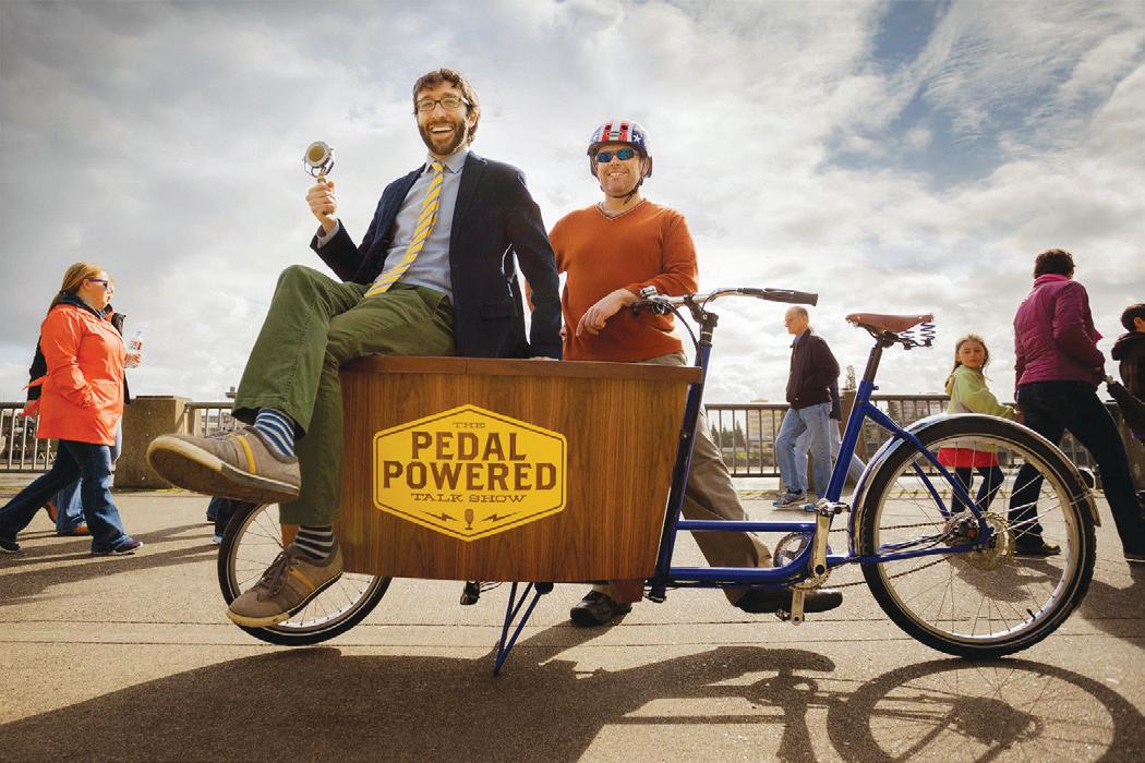 Boaz can now add author to his other titles of flmmaker, talk show host and, curiously, museum curator. For six years, Boaz hosted “ Te Pedal Powered Talk Show,” a fusion of a late-nightstyle-talk-show production and a cargo bike.