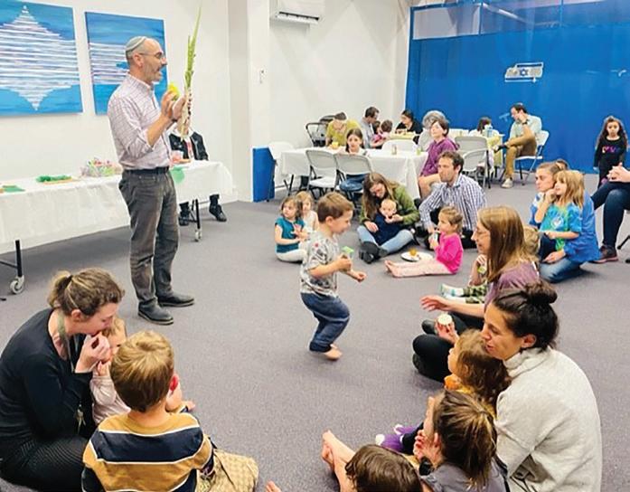 (Courtesy of UJF) United Jewish Federation’s PJ Library held a festive “Sukkot Supper and Song” program at Temple Sinai of Stamford. Families enjoyed dinner and crafts, listened to music by Lizzie Swan of the Swingset Mamas, and created edible sukkahs for dessert. Rabbi Jay TelRav of Temple Sinai spoke to the kids about the harvest holiday of Sukkot and made the blessing with the lulav and etrog.
