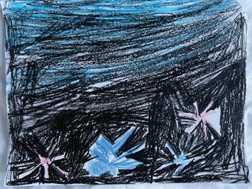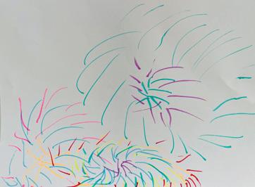 Take a stick and make swirls on the blue side. Clean up the stick and make upward strokes on the green side as shown.