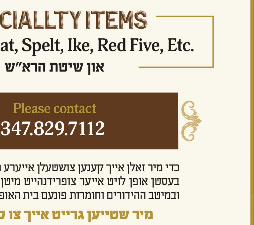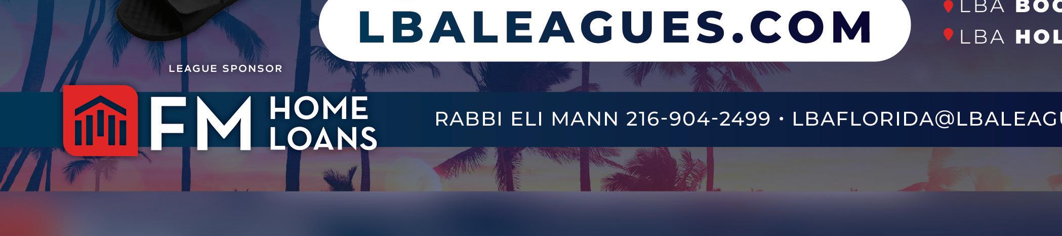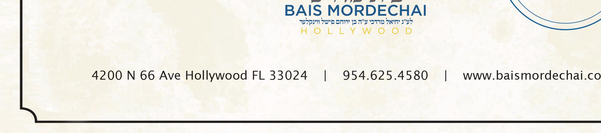 MARCH 7, 2024 / P.51 • TAIJI • QIGONG • YOGA • MEDITATION • FACEBOOK LIVE CLASSES (FREE) EFRAIM JEFFREY GELTMAN www.jerusalemhealth.net I 561.562.2508 LICENSED MASSAGE THERAPIST MA 97383 • MATCHMAKING & DATING • LIFE COACHING EFRAIM JEFFREY GELTMAN www.jerusalemhealth.net I 561.562.2508 LICENSED MASSAGE THERAPIST MA 97383 Endorsed by Reb Yussi Fingerer MODERN SPECS SPECTACULAR VISION AWAITS (754)280-1144 modernspecsfl.com modernspecsfl@gmail.com @modernspecs 3346GriffinRdFTL33312 Sunday 11am - 6pm & Monday - Thursday 10am - 7pm ד''סב Let us lend you a helping hand! HELPING HANDS LENDING G’MACH ל”ז לואש ןב ןרהא ןושמש נ”על ל”ז יכדרמ םירפא תב ה”ע היח אמורפ Please contact: HHLendingGmach@gmail.com 305-534-7050 or 786-268-9883 If you just need a helping hand, the Helping Hands Lending G’mach can provide interest free loans of up to $10,000 for qualifed borrowers.* *Loan Amount, terms and payments are determined for each loan by the Loan Committee in consultation with the borrower. All information is kept in the strictest confidence. 2 guarantors will be required. As loans are repaid, funds are recycled to make new loans. Wedding Car Tuition Credit Card Camp Debt Rent EVENTOPENTOALL!