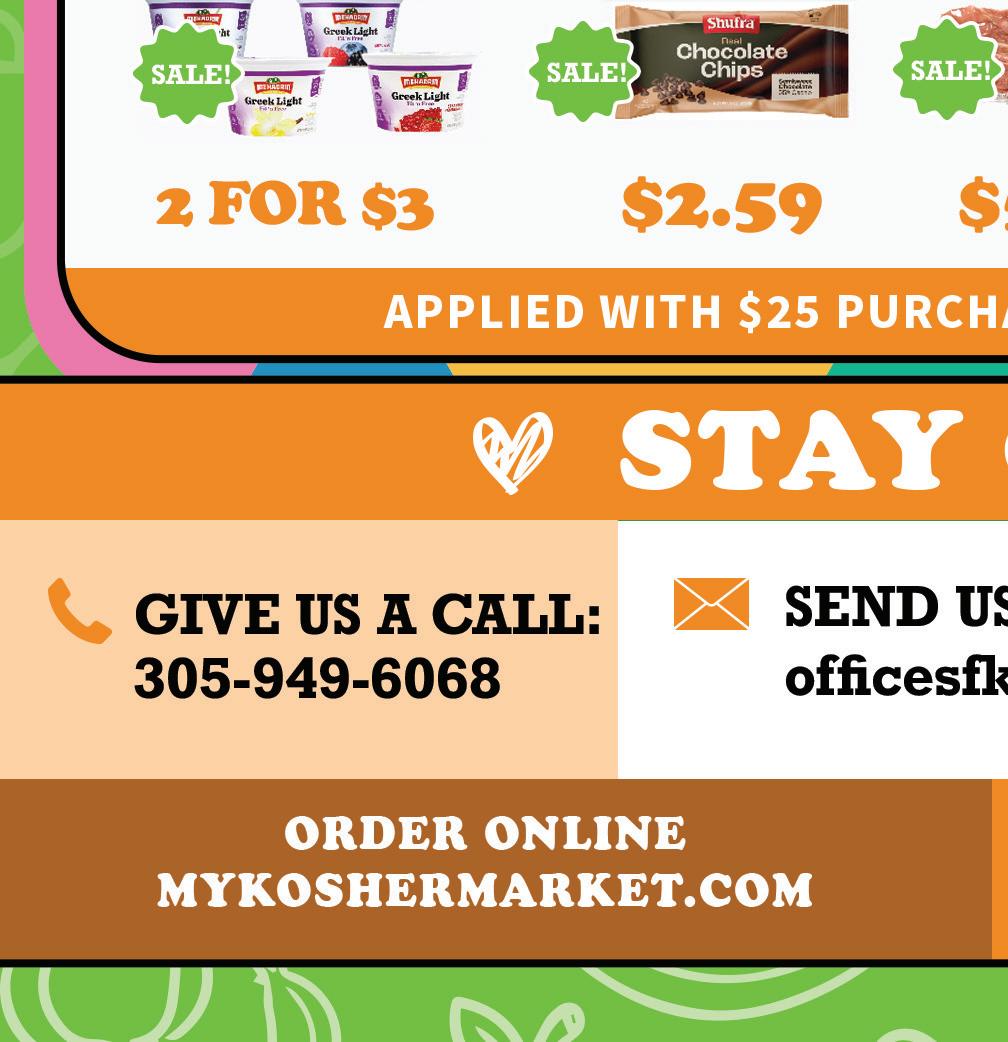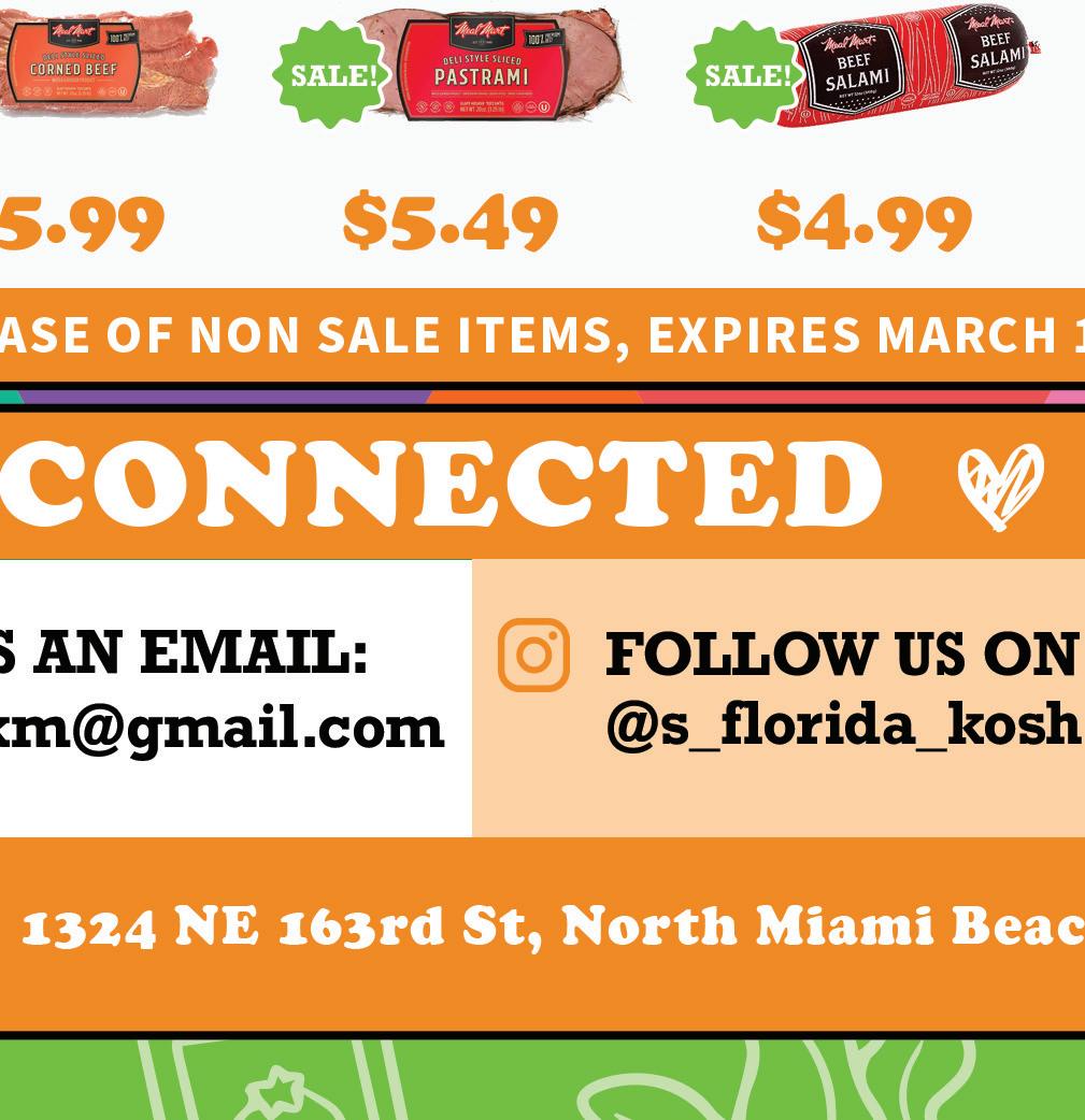 P.2 / TSFCOMMUNITYVOICE.COM FLORIDA'S NEWEST KOSHER SUPERMARKET COME CHECK OUT Grocery 5651 CORAL RIDGE DRIVE, CORAL SPRINGS FL 33076 (RIGHT OFF EXIT 14 OF THE SAWGRASS) Store - 954-752-0008 Whatsapp - 954-706-8991 OPEN UNTIL 10 PM EVERY THURSDAY Purim Specials Are Live Now! Good Through 3/24/24 HURRY! SPECIALS ARE GOOD UNTIL MARCH 24th WINTER HOURS: SUNDAY 9 AM-7 PM MON-WED 8 AM-8 PM FRIDAY 8 AM-3 PM THURSDAY 8 AM-10 PM BLOOM'S MINI SNACK BAGS $0.59 - $.69 $.49-.59/EA, MIX-N-MATCH 25 FOR $10.99 LIEBER'S MINI SNACK BAGS $.69 - $.79 $.59-.69/EA, MIX-N-MATCH 25 FOR $12.99 NUGO BARS $1.89 - $2.29 $1.59 - $1.89 KITOV SNACK BAGS $.69 - $.99 $.59 - $.89, BUY 8 GET 2 FREE SHUFRA SNAKPAKS & PRETZEL CHIPS 1OZ $0.79