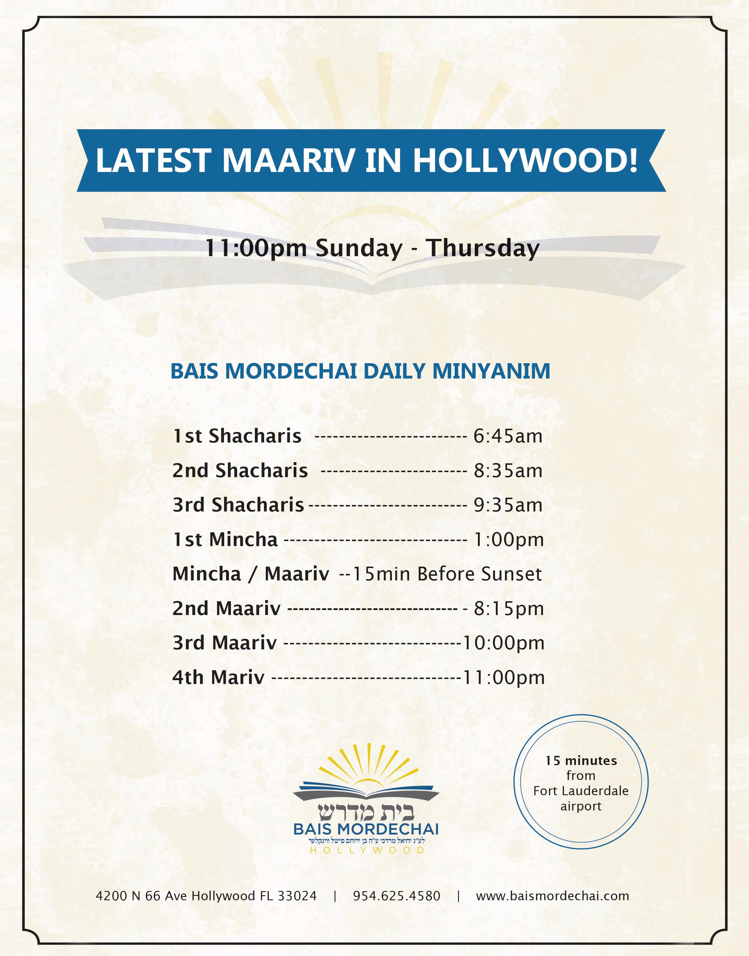 Monday, May 13, 2024 at 6:00PM Young Israel of Hollywood-Ft. Lauderdale, 3291 Stirling Rd, Hollywood, FL 33312
