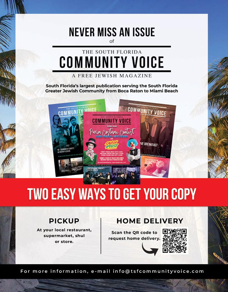 The Community Voice is South Florida’s largest directmail publication bringing together South Florida Jewish communities of: