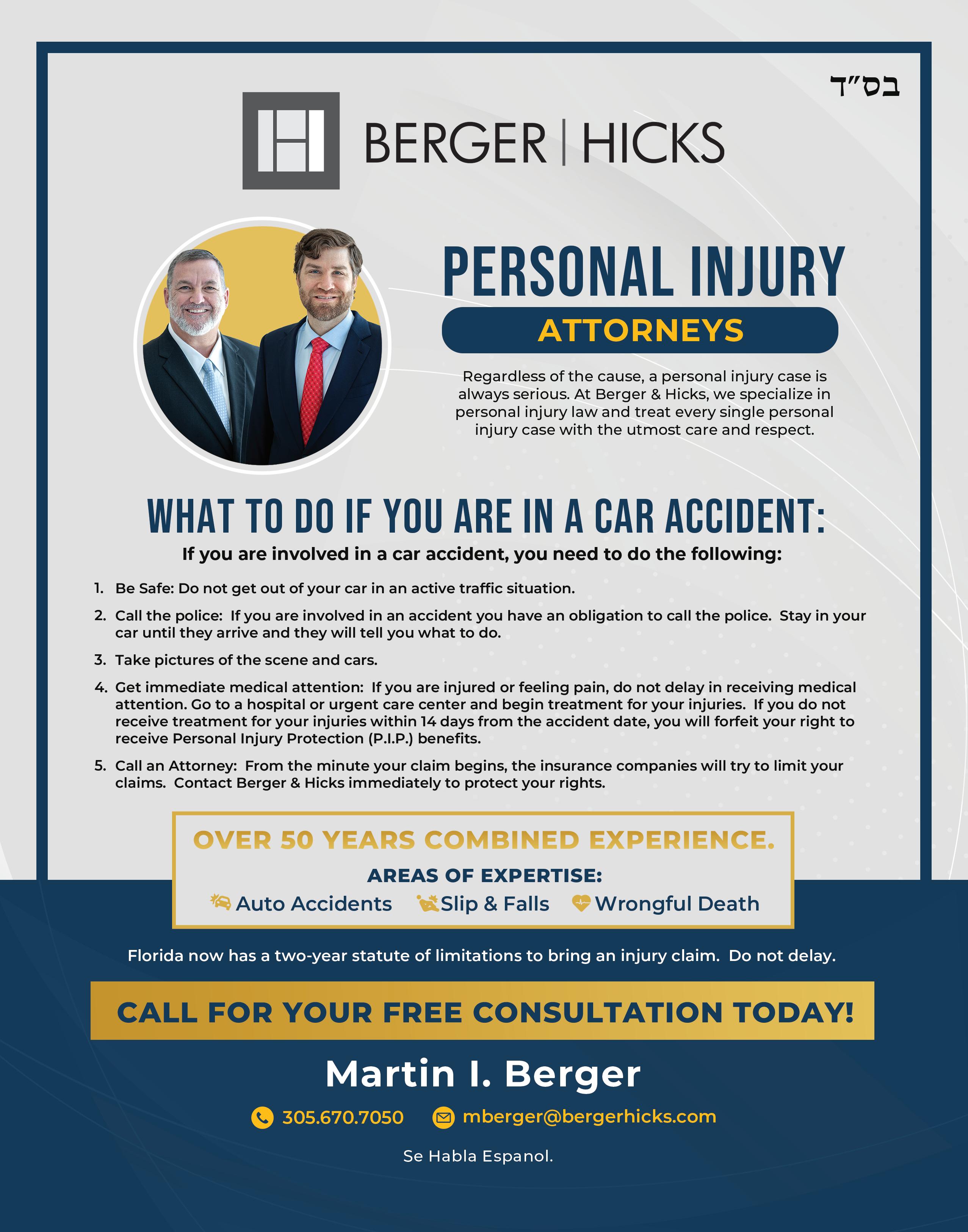 We are honored to introduce the South Florida Community Voice. We will be featuring local updates, articles and ads of local businesses. We have an affiliation with the finest and most reputable business owners and service providers within our Jewish community.