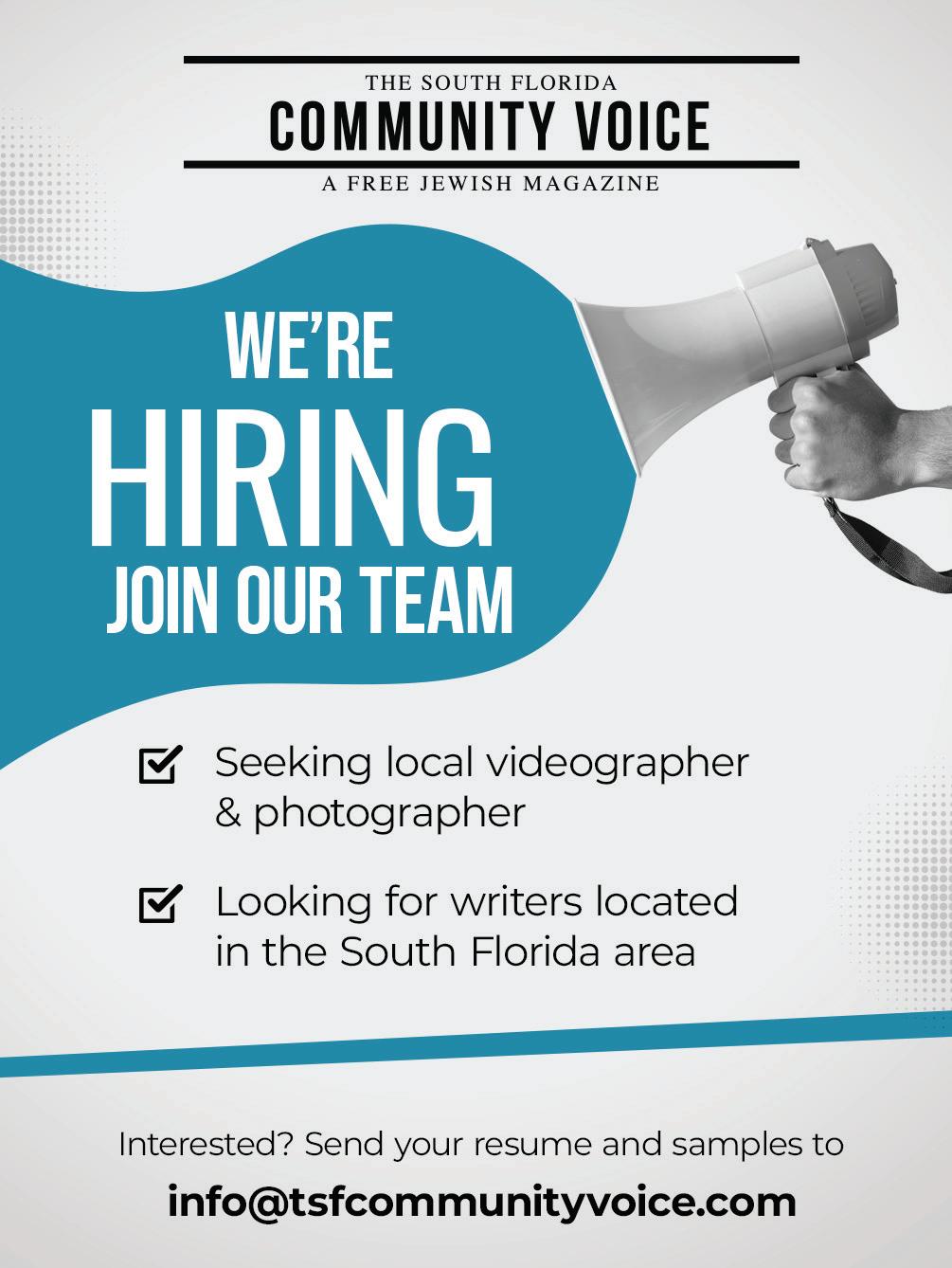 The Community Voice is South Florida’s largest directmail publication bringing together South Florida Jewish communities of: