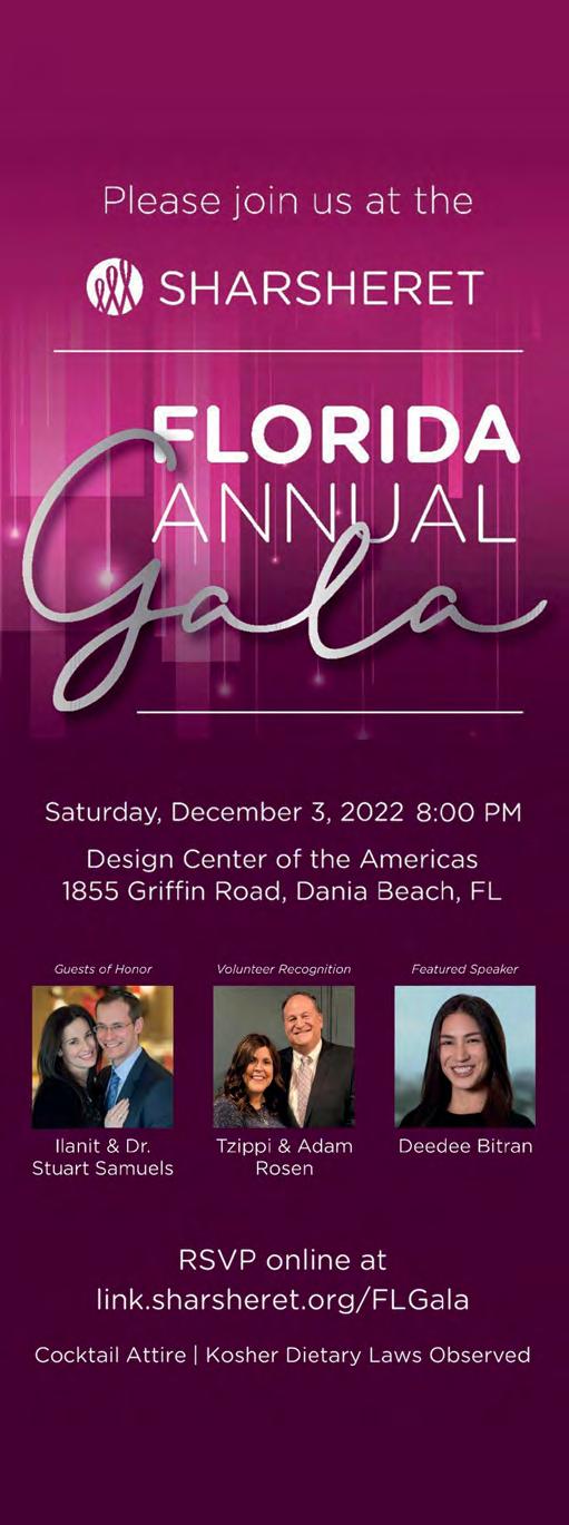 Apartments & buildings Assisted living Mortgage loans Legal advice Moving your assetsCommuni�es BUILDERS AND EXPERTS ARE COMING TO YOU! Learn about purchasing real estate in Israel focusing on: Jerusalem | Tel Aviv | Ramat Beit Shemesh | Modiin | Givat Shmuel | Raanana | Neve Daniel | Efrat | Motza | Haifa | Ma’ale Adumim | Ashkelon | Netanya Par�cipa�on is free with advance registrarion, for more informa�on please visit REALESTATEISRAEL.ORG Miami Aventura Chabad 2801 NE 210 th St, Aventura, FL 33180 Sun. Nov. 20, 2022 All the info you need under one roof To make your best investment decision