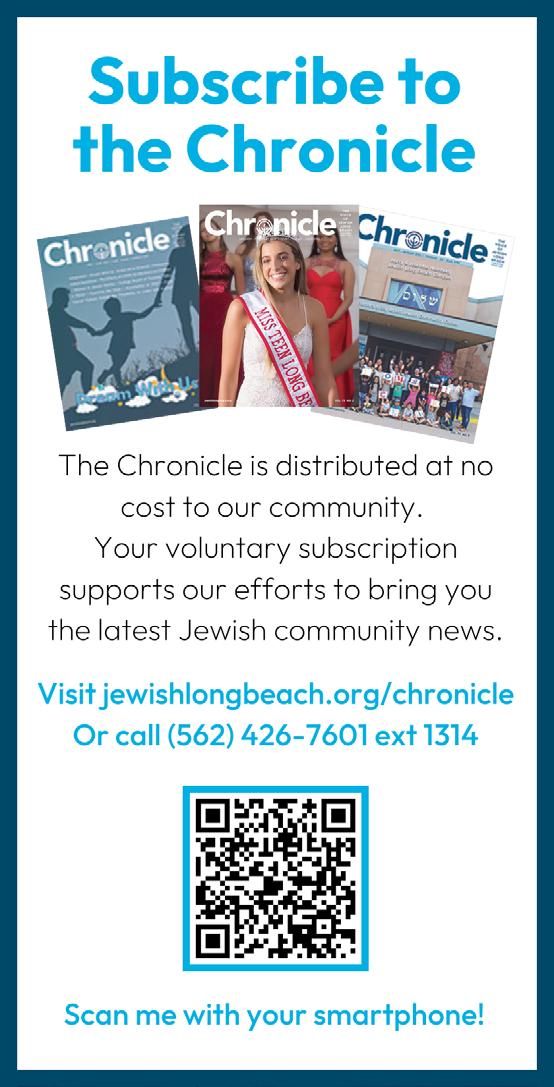 Editorial and advertising queries, please call 562.426.7601 x1314 or write chronicle@jewishlongbeach.org.