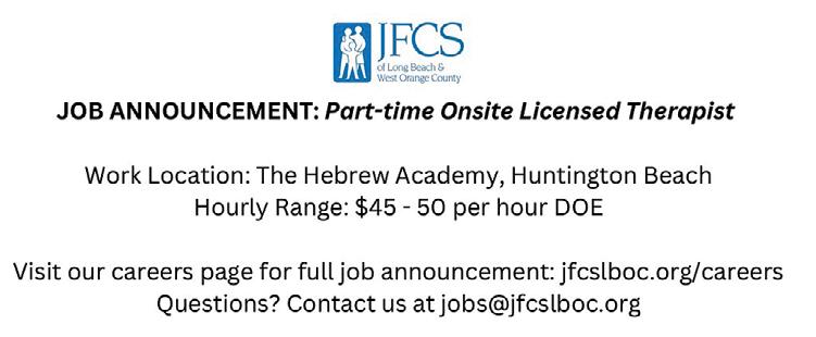 The appearance of product or establishment advertising in the Jewish Community Chronicle does not constitute an endorsement of kashruth. Opinions printed in the Jewish Community Chronicle do not necessarily reflect those of Jewish Long Beach. The publication of a paid political advertisement does not constitute endorsement of any candidate, political party or political position by Jewish Long Beach or any employee.