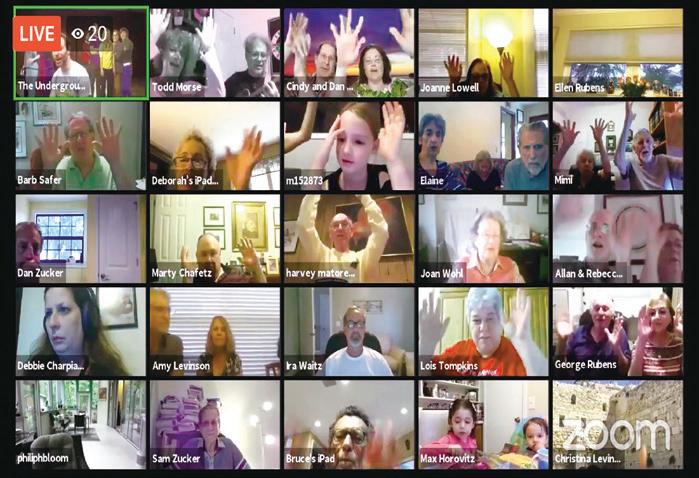 The calendar was fi lled with a number of musical off erings. One highlight was a month of music from our Artist-inResidence Eliana Light, who taught in our schools, led virtual services, and sang in a virtual concert. Other virtual off erings included Hazzan's Yom Ha'Atzma'ut sing along, singing in the rain and Some Good Nus. Todd Morse and Haz were back in the sanctuary for Shabbat in the Underground, and our Lag B'Omer Family Fun Day featured the fi rst outdoor performance by local legends, String Theory.