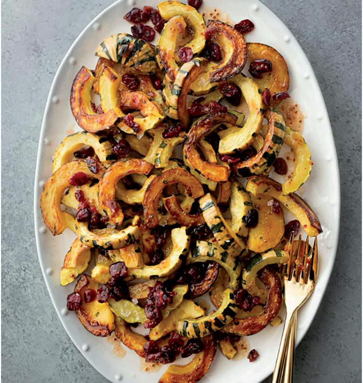 Remove from the oven. Toss again and turn over large pieces. Toss with cranberries. Roast for an additional 15 minutes.