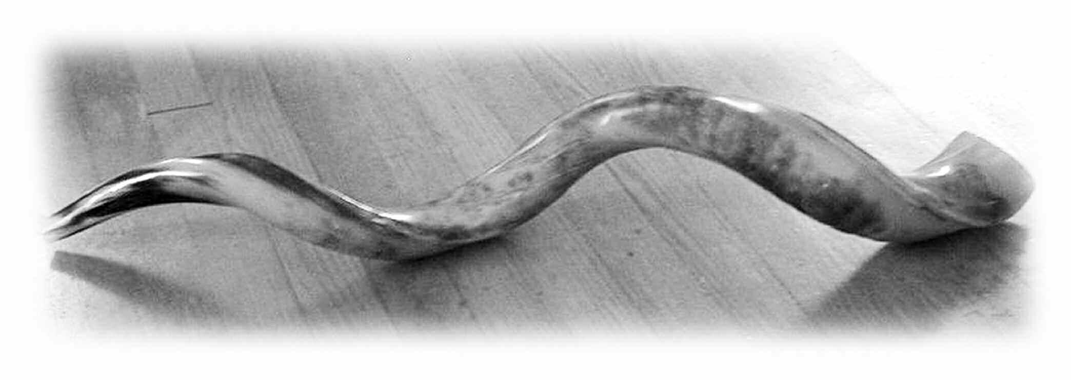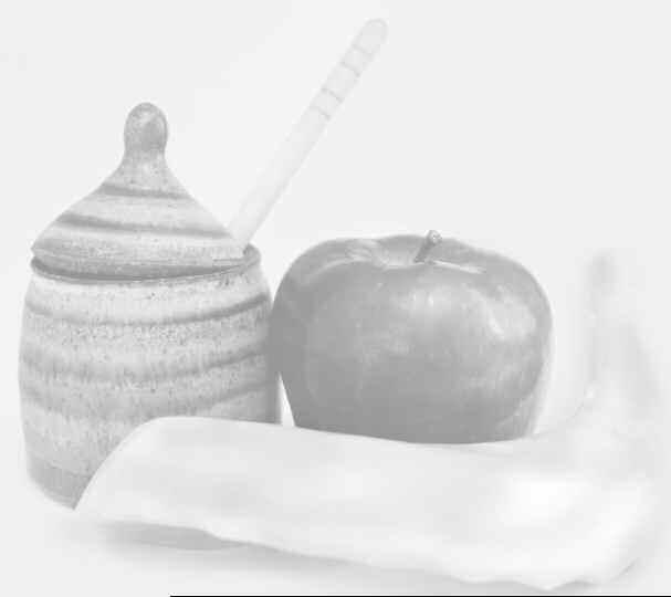 The artwork includes some traditional elements associated with the holiday.One is the shofar (ram’s horn),which is to be sounded on this day.The other is the pomegranate.It is customarily consumed and represents fruitfulness,knowledge, learning and wisdom as well as symbolizing righteousness.