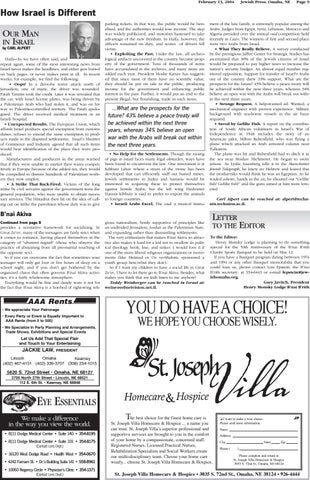How Israel is Different OUR MAN IN ISRAEL by CARL ALPERT Haifa--As we have often said, and repeat again, some of the most interesting news from Israel never makes the headlines, and either gets buried on back pages, or never makes print at all. In recent weeks, for example, we find the following: • Oops! In a drive-by terror attack north of Jerusalem, one of many, the driver was wounded. Fatah Tanzim took the credit. Later it was revealed that the car, with Israel license plates, was being driven by a Palestinian Arab who had stolen it, and was on his way to Palestine-controlled territory. The Fatah apologized. The driver received medical treatment in an Israeli hospital. • Unexpected Results. The European Union, which affords Israel products special exemption from customs duties, refuses to extend the same exemption to products made in the disputed settlements. Israel’s Minister of Commerce and Industry agreed that all such items would bear identification of the place they were produced. Manufacturers and producers in the areas warned that if they were unable to market their wares competitively in Europe because of the added tax, they would be compelled to dismiss hundreds of Palestinian workers they now employ. • A Strike That Back-Fired. Victims of the long strike by civil servants against the government were the general population, who were unable to obtain necessary services. The Histadrut then hit on the idea of calling out on strike the patrolmen whose duty was to give