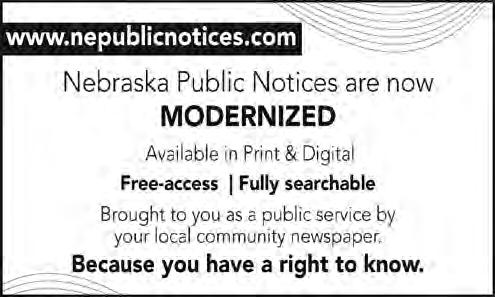 HELLO NEBRASKA! Introducing www.nepublicnotices.com, a new public notice website presented as a public service by all Nebraska newspapers. Free access, fully searchable – because democracy depends upon open government and your right to know.