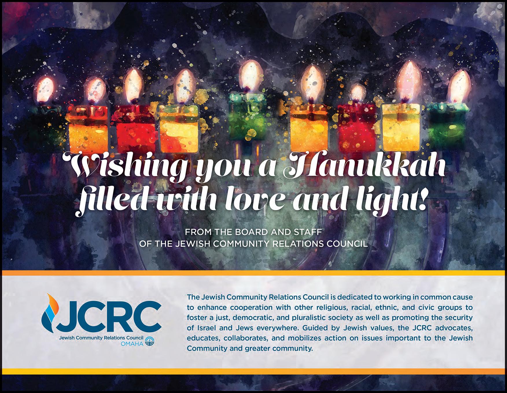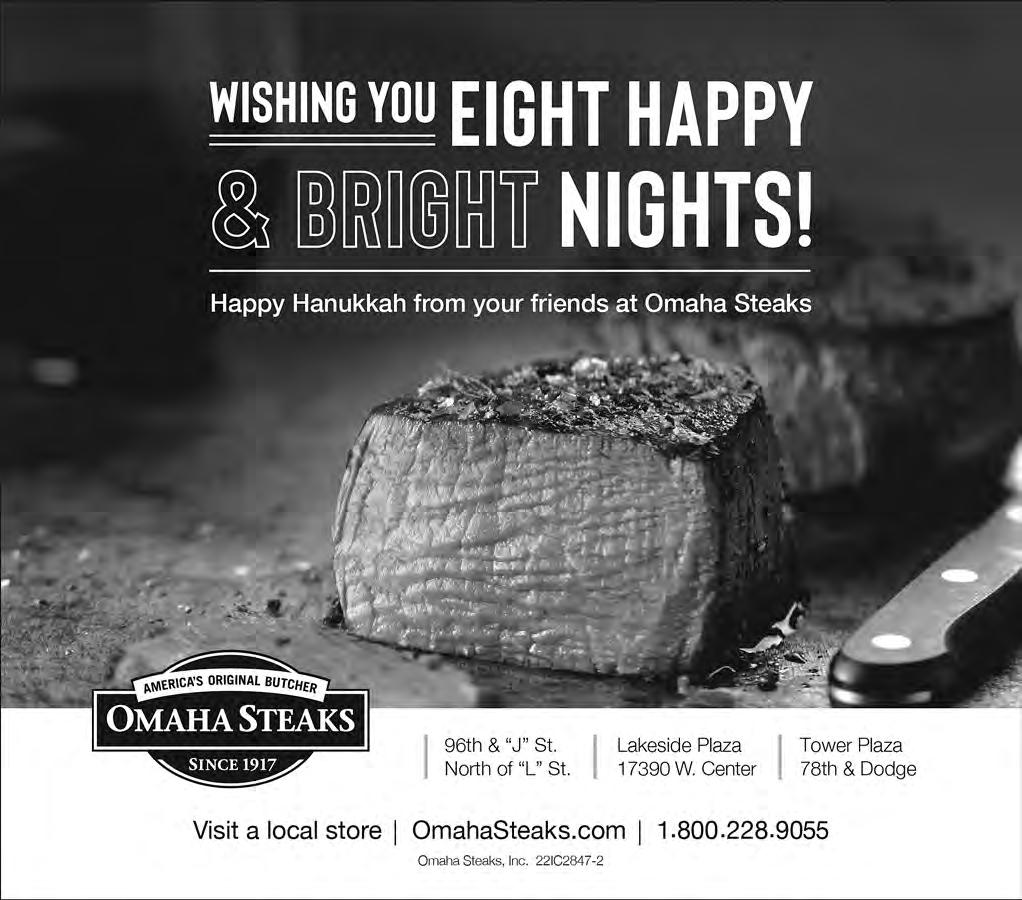 The Jewish Press | December 9, 2022 | 5 from The Lincoln Jewish Community Alex Felch, Rabbi Congregation B’nai Jeshurun Congregation Tifereth Israel The Jewish Federation of Lincoln Happy Hanukkah Chag Urim Sameach! Happy Holidays Enterprise Bank www.enterprise.bank 12800 West Center Road Omaha, NE 68144 402/330-0200 Fax: 402/330-3884 210 Regency Parkway Omaha, NE 68114 402/392-0400 Fax: 402/392-0100 Member FDIC Paid for by Jean Stothert for Omaha Committee | 5909 S. 118th Plaza | Omaha, NE 68137 From my family to yours, we wish you a happy Hanukkah.