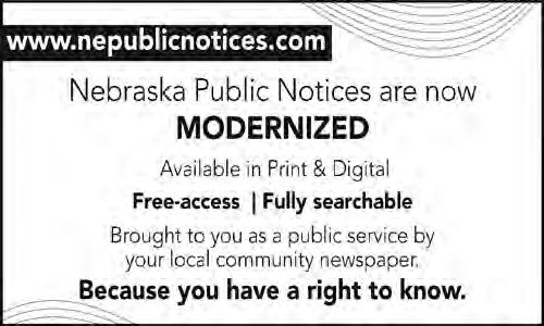 HELLO NEBRASKA! Introducing www.nepublicnotices.com, a new public notice website presented as a public service by all Nebraska newspapers. Free access, fully searchable – because democracy depends upon open government and your right to know.
