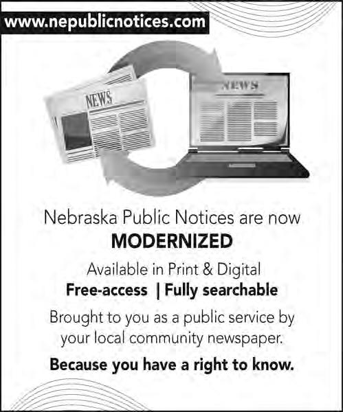 HELLO NEBRASKA! Introducing www.nepublicnotices.com, a new public notice website presented as a public service by all Nebraska newspapers. Free access, fully searchable – because democracy depends upon open government and your right to know.