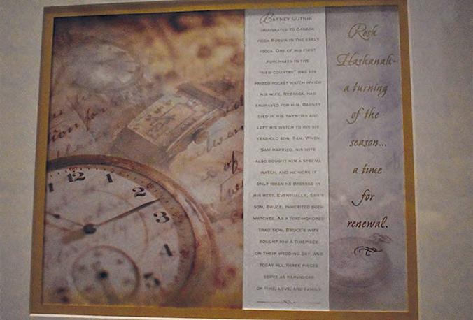 “One of his first purchases in the ‘new country’ was his prized pocket watch, which his wife, Rebecca, had engraved for him. Barney died in his twenties and left his watch to his six-year-old son, Sam. When Sam married, his wife also bought him a special watch, and he wore it only when he dressed in his best. Eventually, Sam’s son, Bruce, inherited both watches. As a time-honored tradition, Bruce’s wife bought him a timepiece on their wedding day, and today all three pieces serve as reminders of time, love, and family.