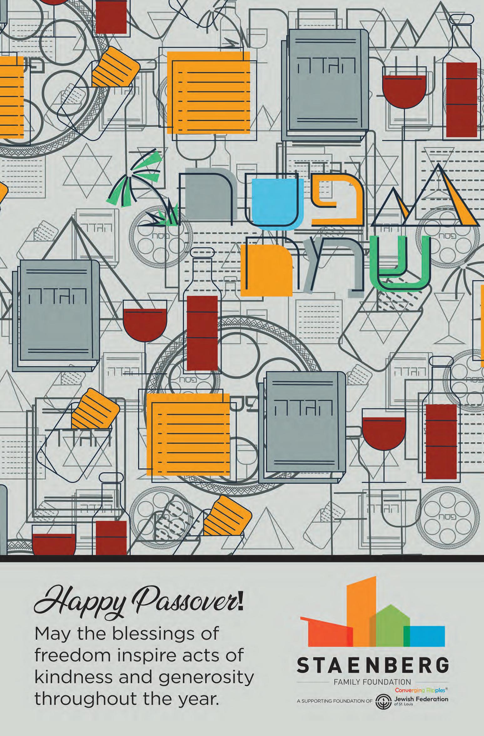 THURSDAY: Offices Closed for Pesach; Passover Services, 9:30 a.m. at TI; Lincoln Community Seder, 6 p.m. at TI. Please RSVP or volunteer to events@so uthstreettemple.org
