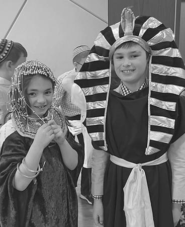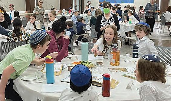 Our school seder is great. We have food, learn about the plagues, hide the afikomen, and have a play. The play is fun and shows the Jews asking Pharoah to let them go. The play goes See Friedel page A7