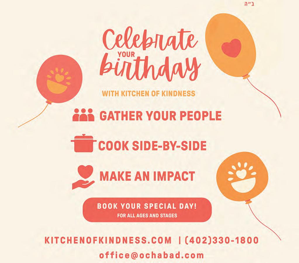 Join classes via Zoom. Go to ochabad.com/academy. Visit the Passover site at ochabad.com/ passover. For more information or to request help, please visit www.ochabad.com or call the office at 402.330.1800.