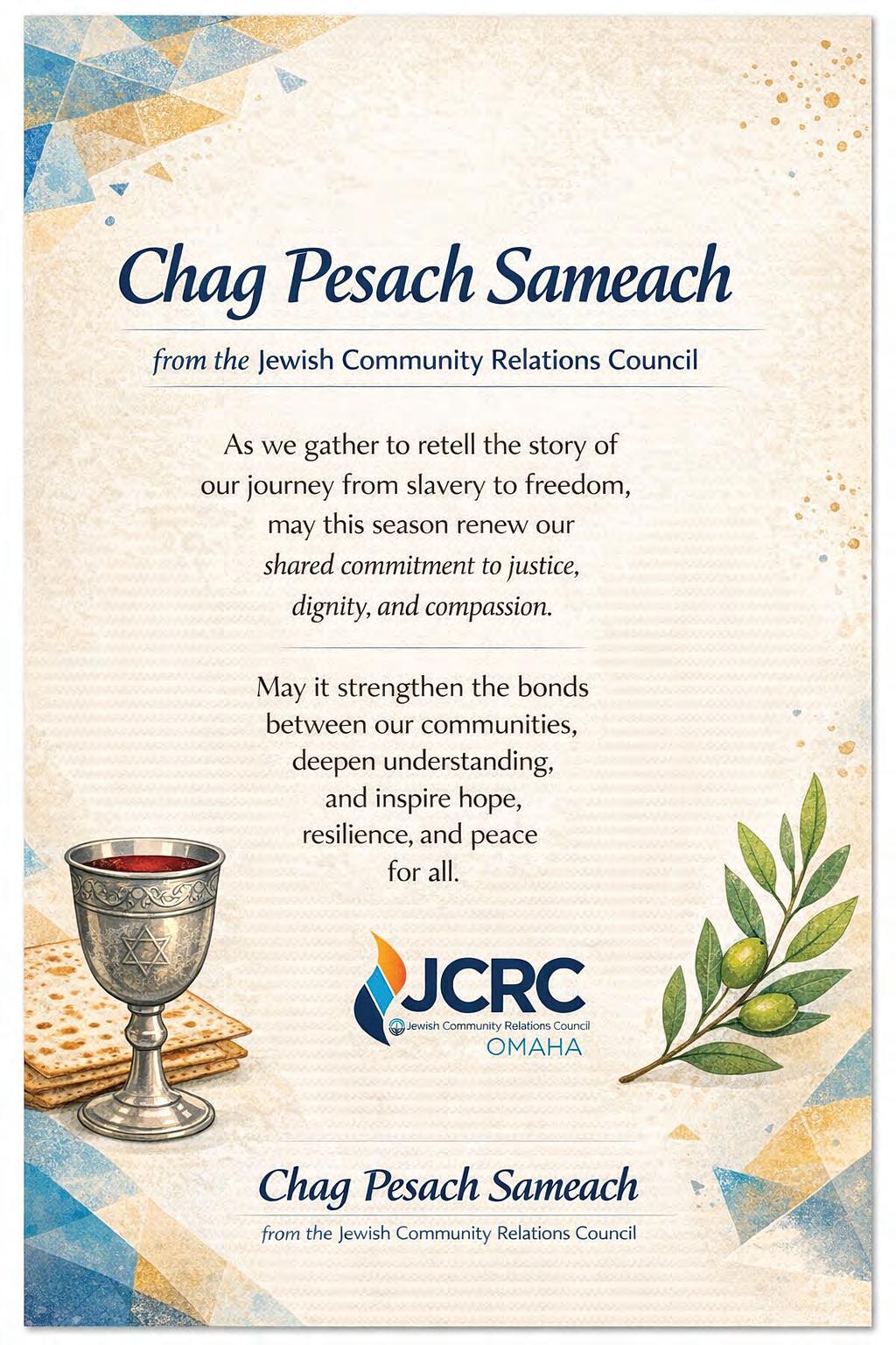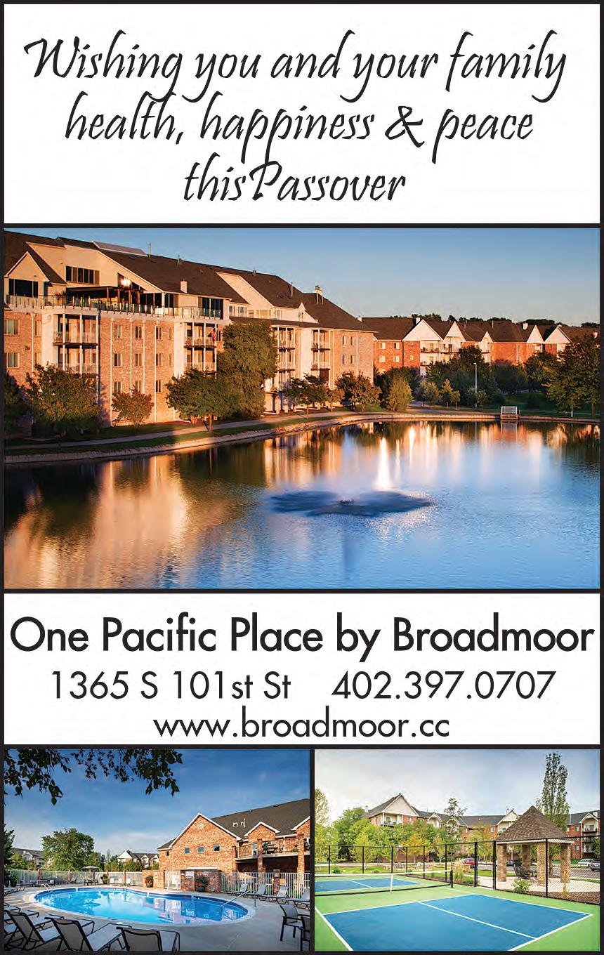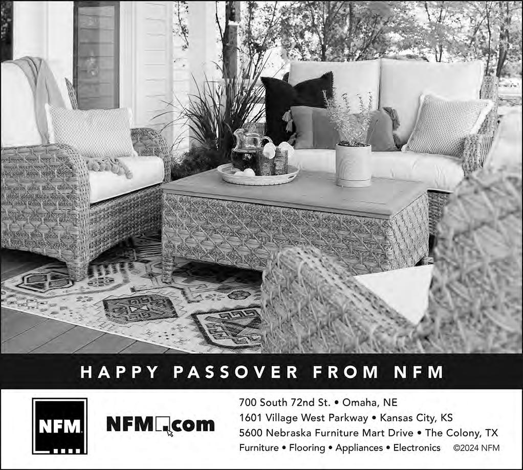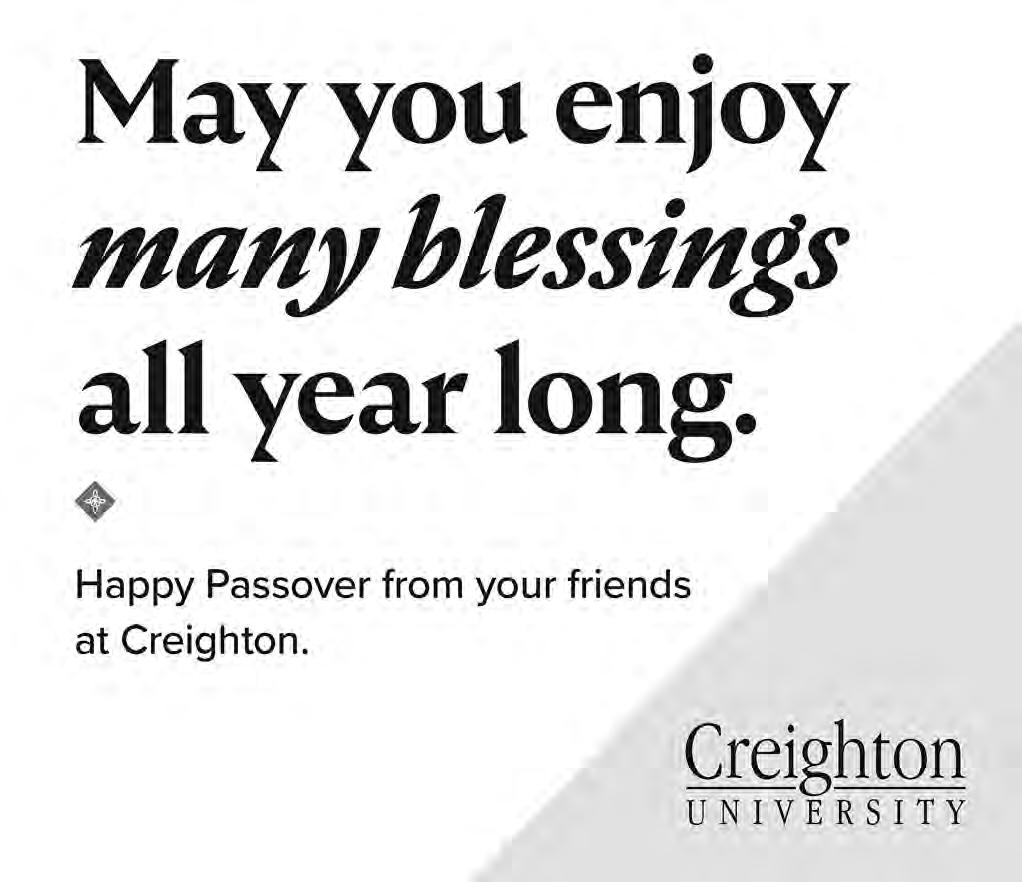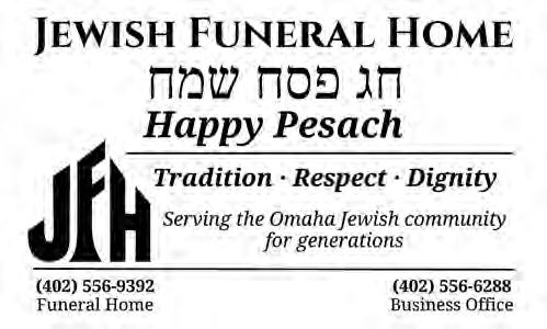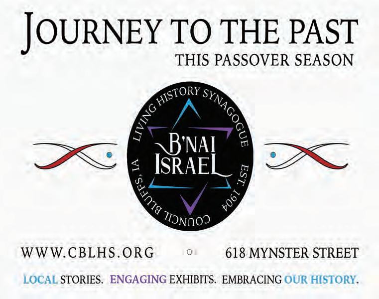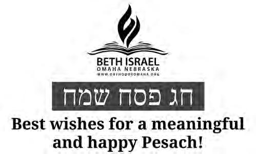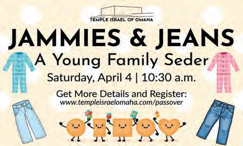 SATURDAY-Mar. 28: Torah Study, 9:15 a.m. In-Person & Zoom; Shabbat Morning Service, 10:30 a.m. InPerson & Zoom; Jammies & Jeans: A Young Family Passover Seder, 10:30 a.m. RSVP Required — In-Person. Please visit templeisraelomaha.com for additional information and Zoom service links.