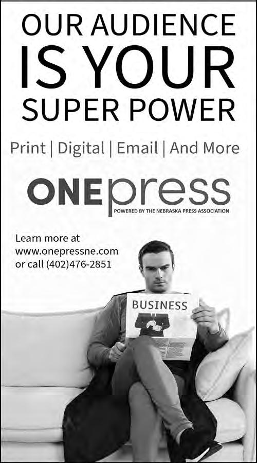 AFFORDABLE PRESS Release service. Send your message to 155 newspapers across Nebraska for one low price! Call 1-800369-2850 or www.nebpress.com for more details.