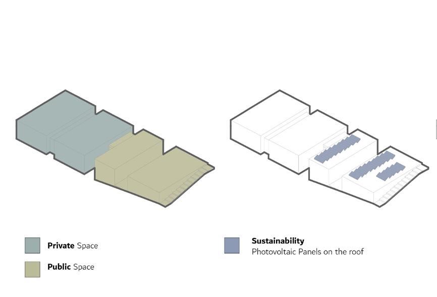 La sostenibilidad es un factor importante hoy en día, y es por eso que este proyecto se realizó con la ambición de reducir la huella de carbono que trae la construcción. Los materiales principales son CLT y GLT, utilizando menos hormigón.