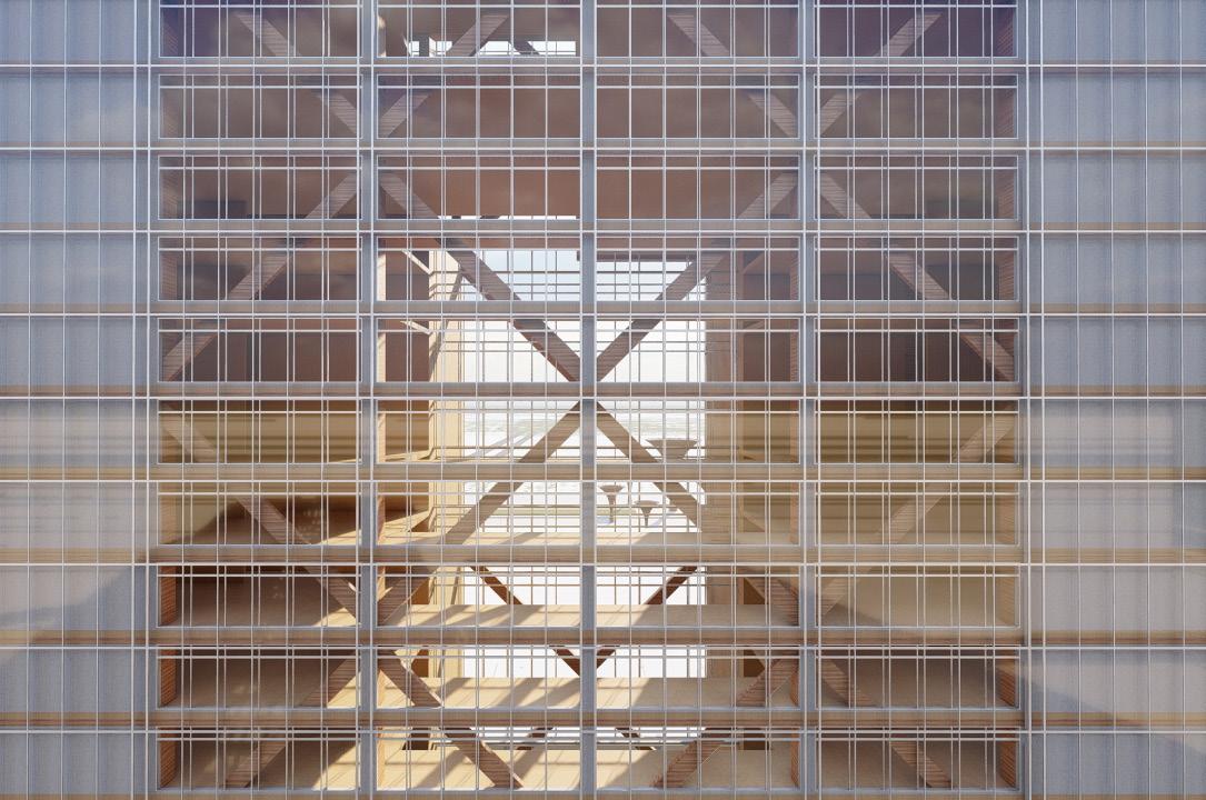 Detalles de fachada y atrio interior en CLT usando Lumion
