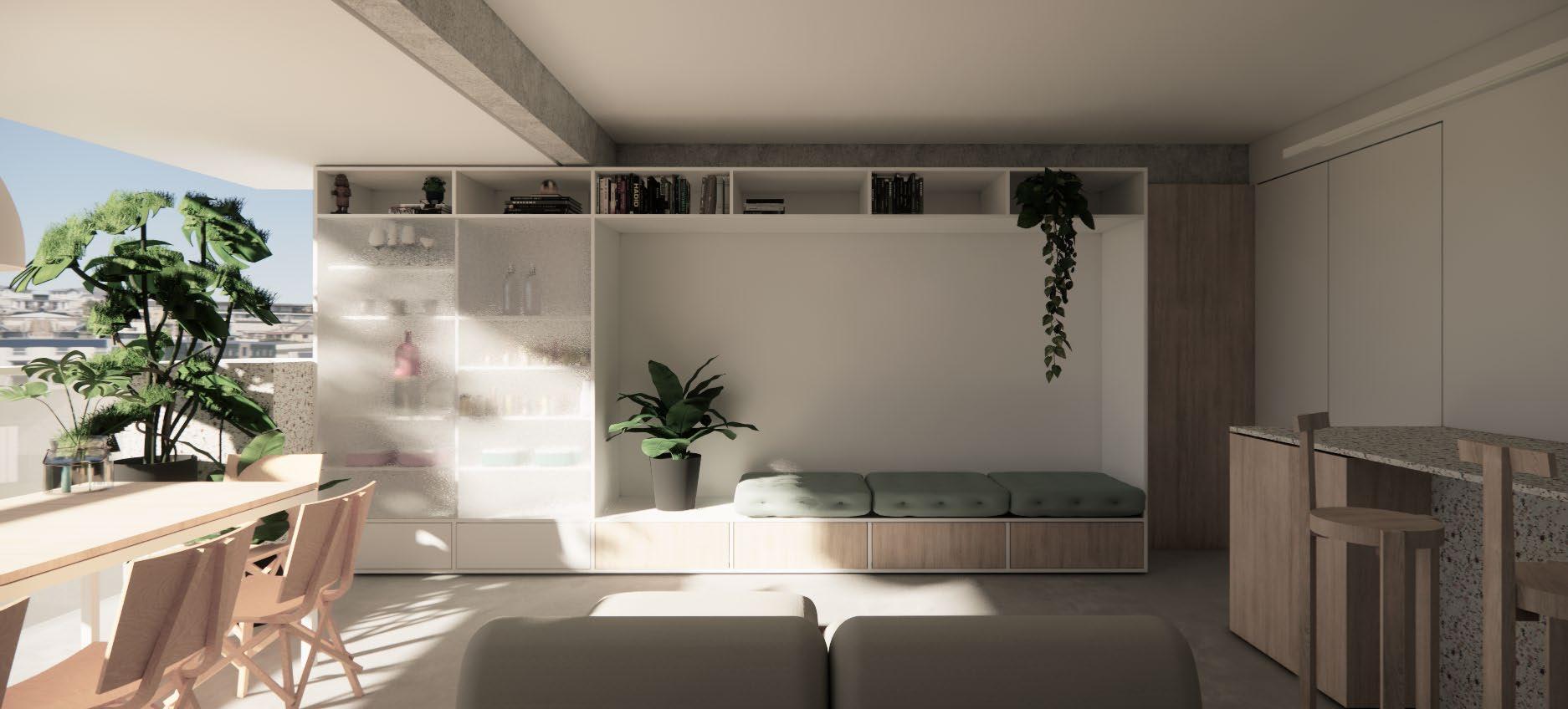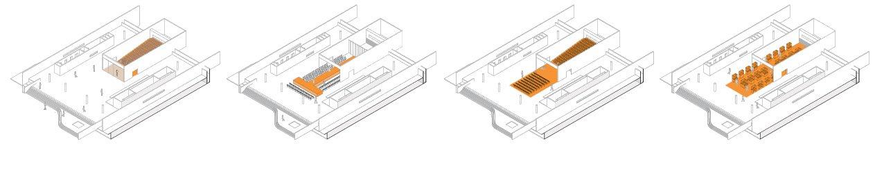 Podemos dizer que consideramos que as vezes a melhor construção é justamente aproveitar de espaços não construídos, com isso criamos rasgos verticais criando praças sem uso definido, permitindo que as pessoas escolham o que fazer e se apropriem do local como bem entenderem. Esses vazios esculpidos no paralelepípedo base configuram uma fragmentação linear da forma como programa.