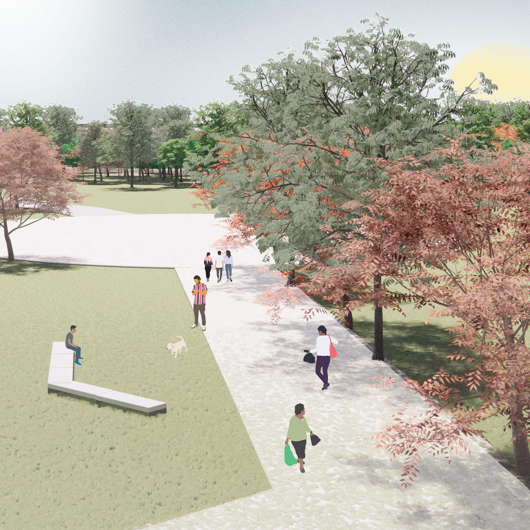 O ponto focal desta intervenção é a passarela, que possui uma extensão de quase 100 metros. Esse desafio vai além da questão estrutural, pois é importante evitar que esse trajeto se torne monótono. Por isso, encarei esse projeto como uma oportunidade de criar um espaço urbano progressivo.