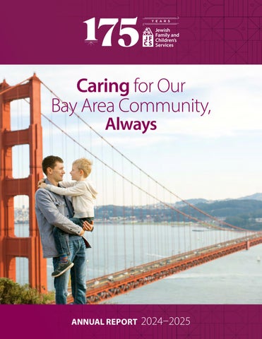 Jewish Family and Children's Services is one of the oldest and largest family service institutions in the United States, founded in 1850 by immigrant pioneers who arrived in California during the Gold Rush and created an extended family to care for each other. Today, we continue to be that extended family, serving 130,000 people annually with the highest quality, research-based social services designed to strengthen individuals, strengthen families, and strengthen community. As the problem-solving center for residents of San Francisco, Marin, Sonoma, Santa Clara, and San Mateo counties, we are a lifeline for children, families, and older adults facing life transitions and personal crises. We are grateful to the many generous donors, businesses, and foundations that enable us to continue our humanitarian work.